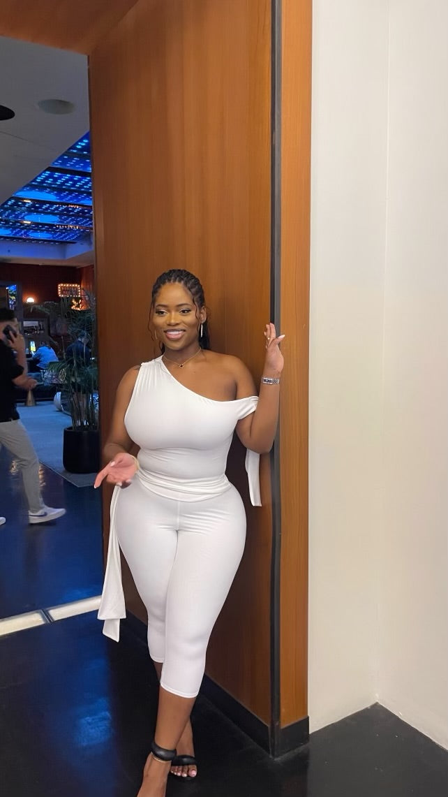 White two piece set. Lycra material. Stretchy. Item runs true to size.