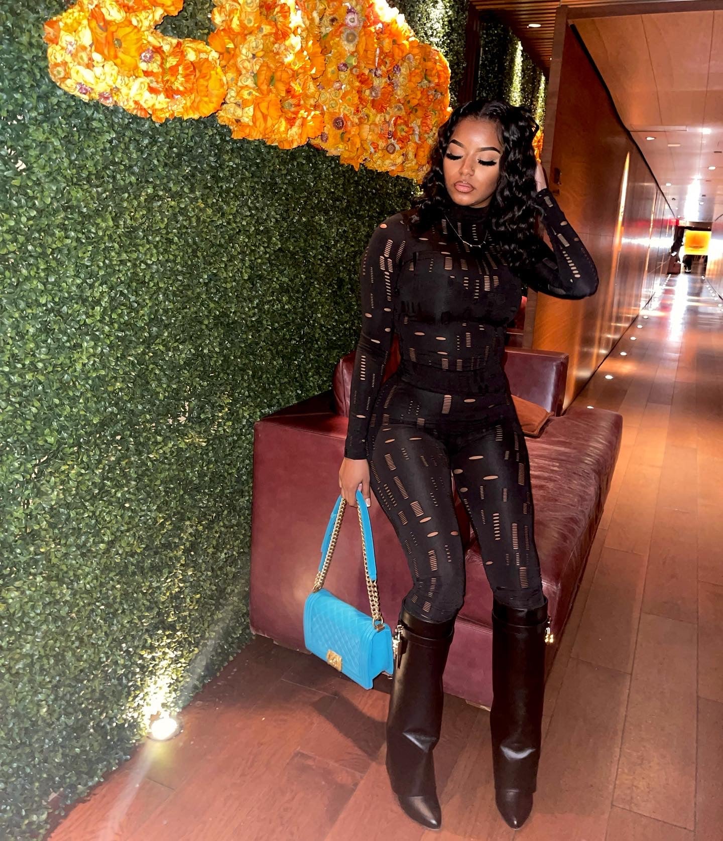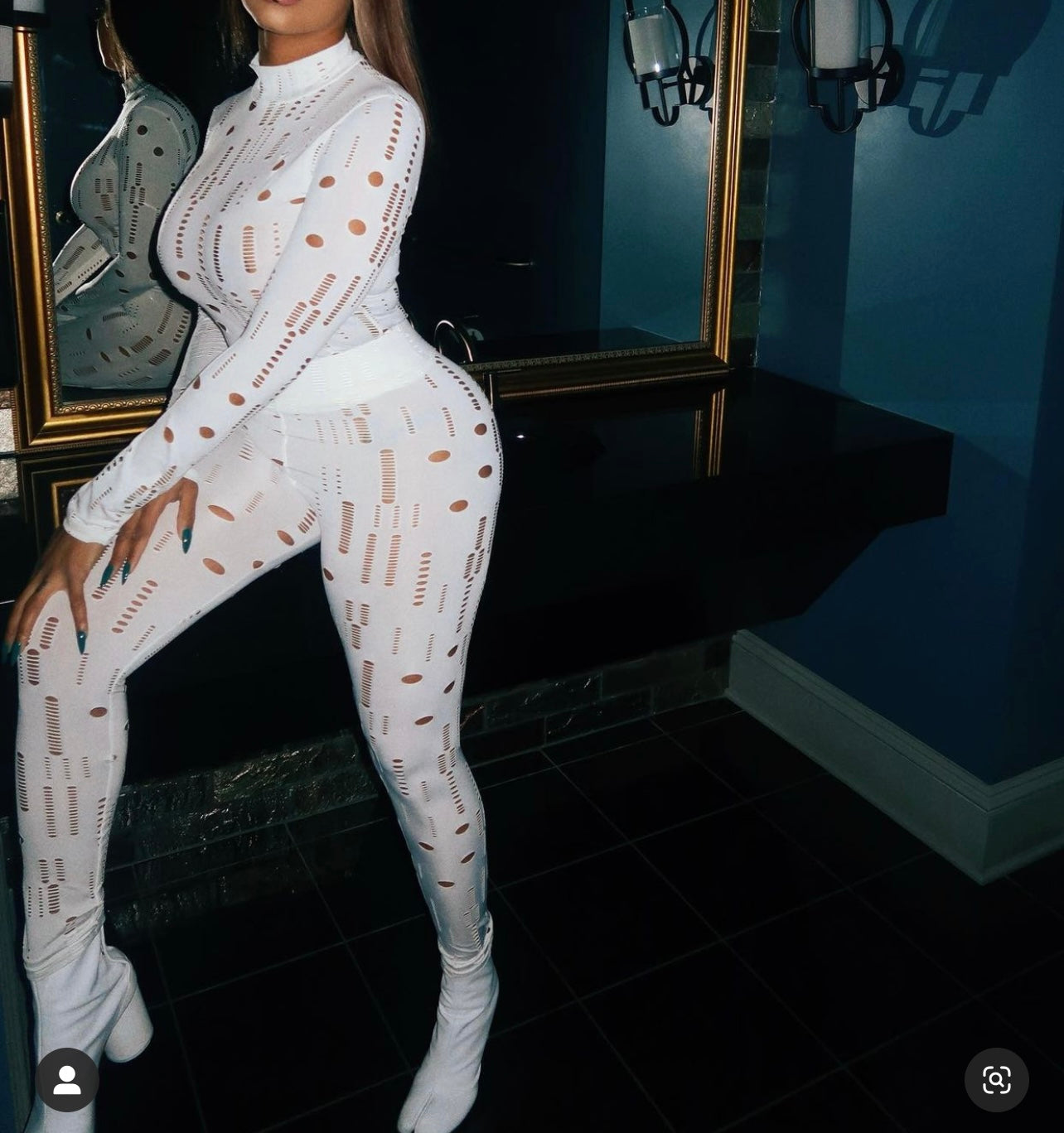 Two piece set with see through holes. Stretches. Item runs true to size. Available in black and white.