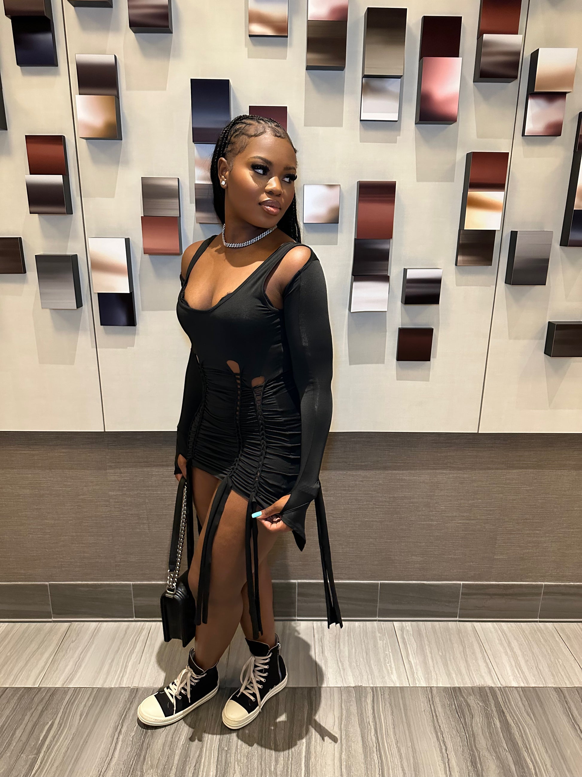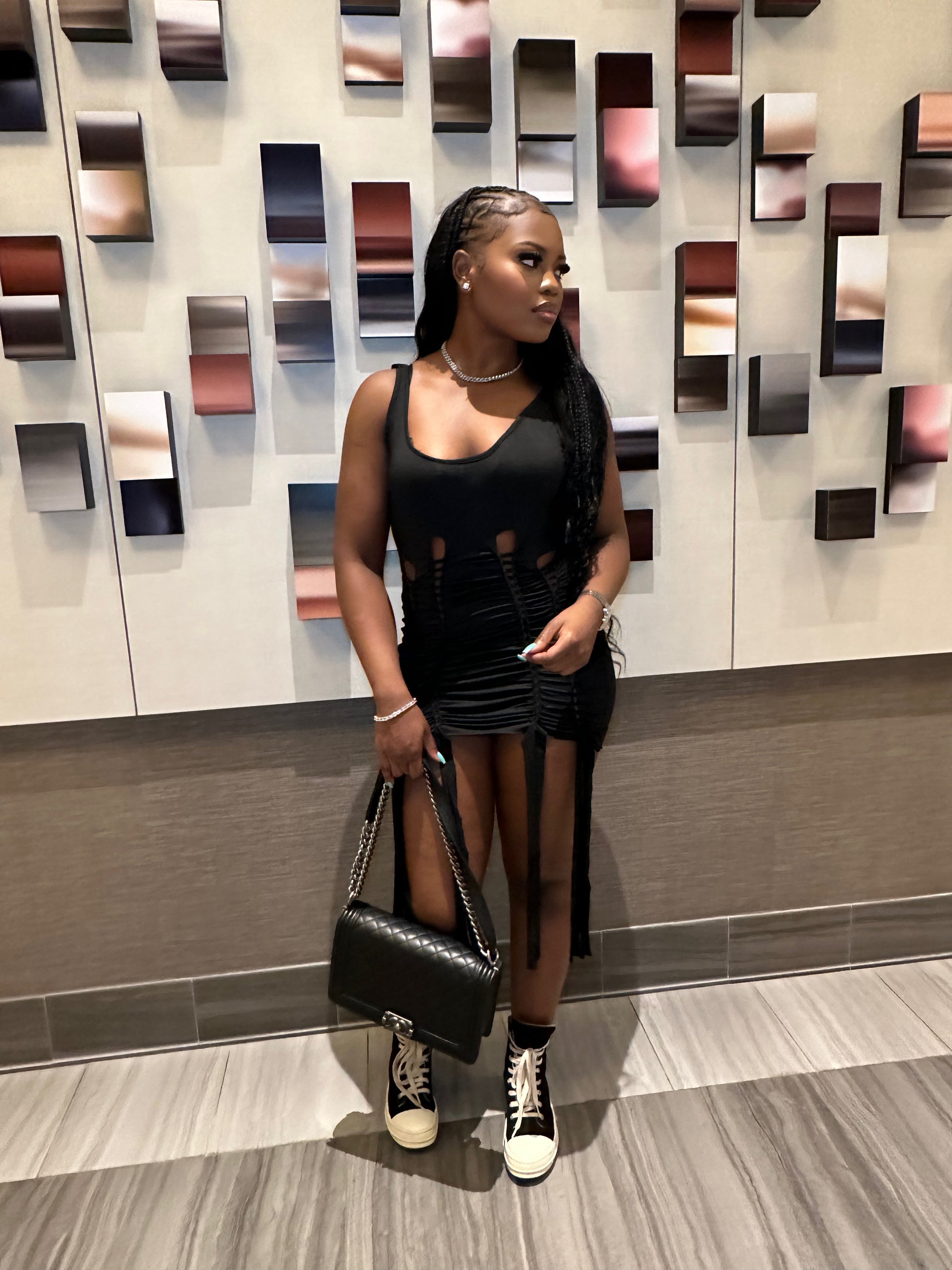 The Lala dress is a two piece dress they can be worn different ways. Very funky. Can be dressed up or down. Very comfortable. Stretchy. Item runs true to size. Available in white and black.