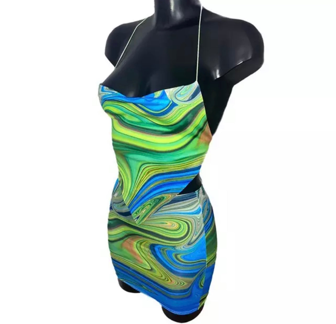 Two piece satin set. Available in pink and green. Item runs true to size. MIDI stretchy skirt paired with satin top.